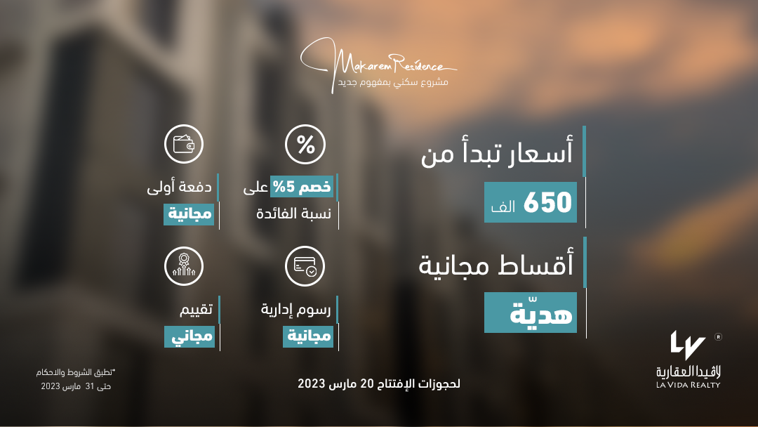 تعلن "لافيدا العقارية" عن انطلاق التسويق لمبنى فندقي وتجاري مجهّز حتى يكون بتصنيف 4 نجوم , والذي يقع في أكثر المناطق حيوية ويكتسب أهميته من وقوعه على طريق الحرمين وإطلالته المباشرة على الخط السريع , كما يتوسط المسافة بين المطار وبين محطة القطار ,بمساحة أرض 1500 م2.